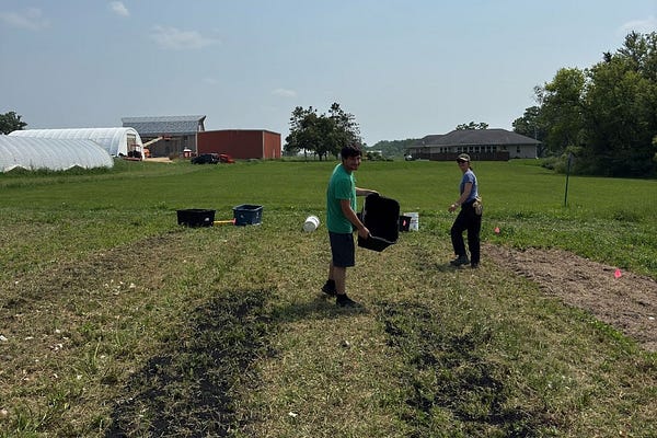 Applying Biochar to beds of Sweet Corn