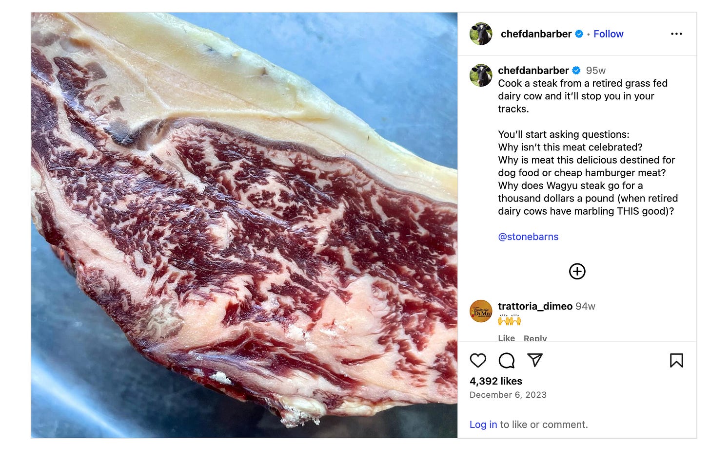 We got turned onto this idea at an event with Chef Dan Barber at Stone Barns in New York last year during Climate Week and we figured that with Flynn Creek Farm in the middle of dairyland, this presented a win-win-win opportunity. 1) This majestic animal gets to live out her years on delicious pasture grass, 2) We’ll pay our neighboring dairy farmers a better price than the hamburger factory, and 3) the consumer has the opportunity to have highly nutritious meat that purportedly is higher in Omega 3’s than salmon.