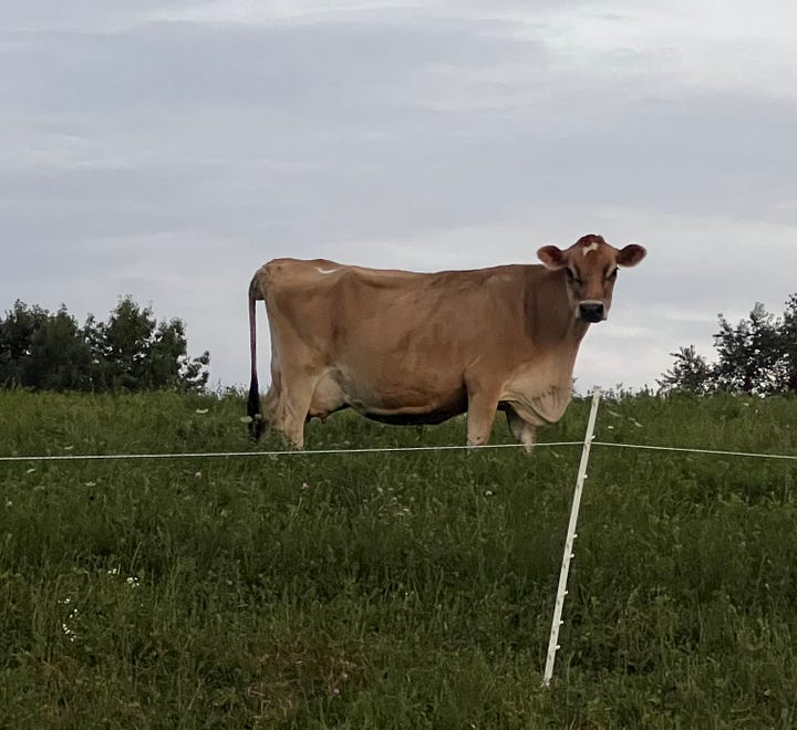 We had six calves born into our Black Angus herd this month which was quite special. We also are excited about acquiring Yoyo (pictured right) a seven year old retired dairy cow. She is a Jersey and will be spending the next several years on our pasture putting some weight on.